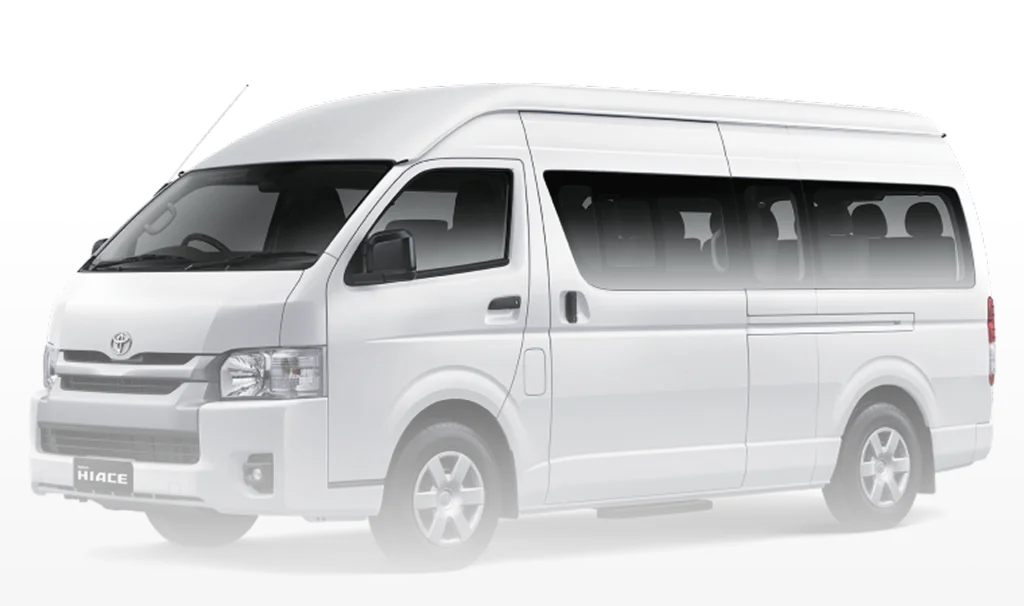 Hiace Premio siap antar ke mana pun! Nyaman, lega, dan cocok untuk perjalanan wisata atau bisnis.
